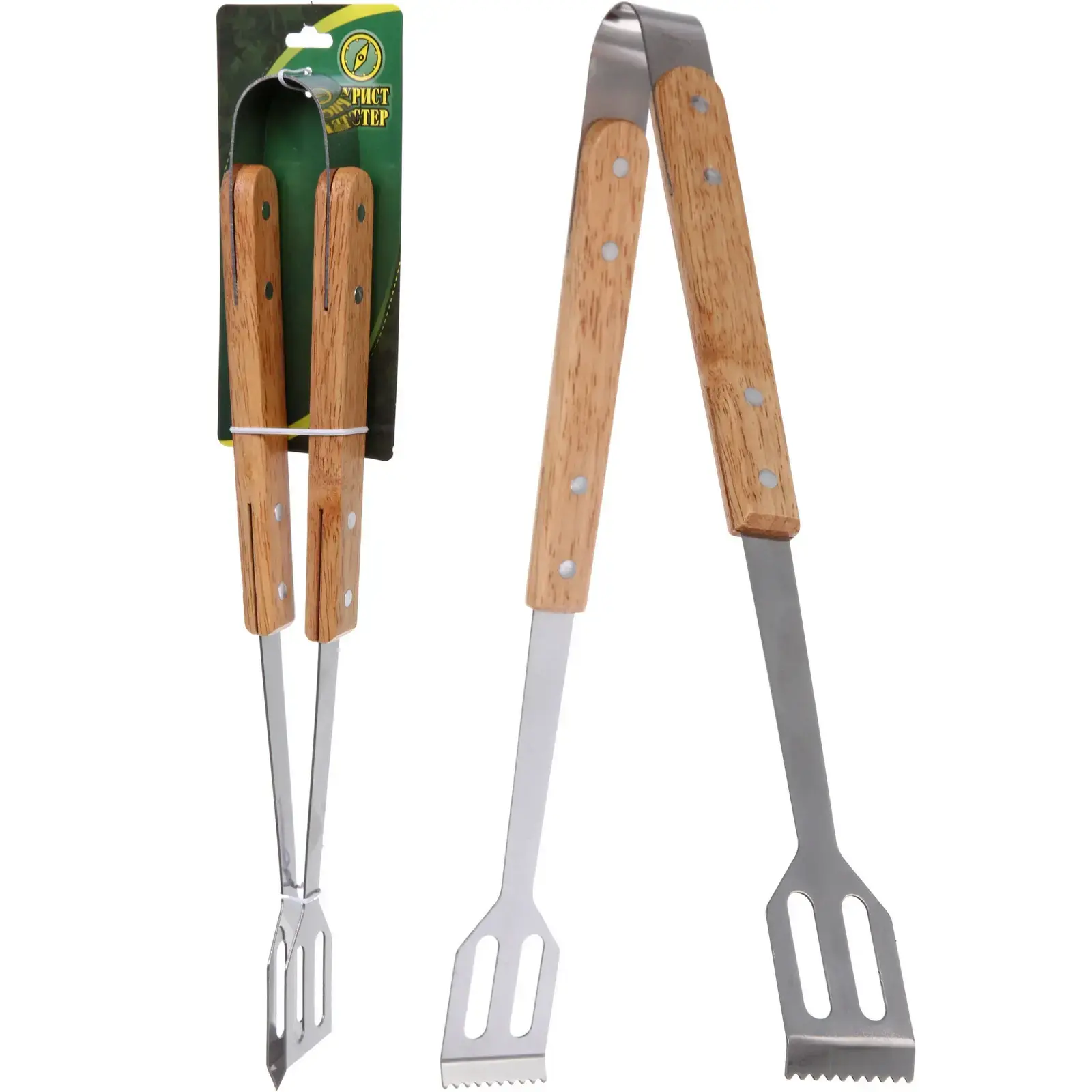 Щипцы имеют эргономичную форму и удобные деревянные ручки, которые обеспечивают надежный захват и комфорт при использовании. Они подходят как для опытных кулинаров, так и для новичков, желающих насладиться процессом приготовления на гриле. Благодаря своей длине, щипцы позволяют безопасно работать с горячими блюдами, не обжигая руки.