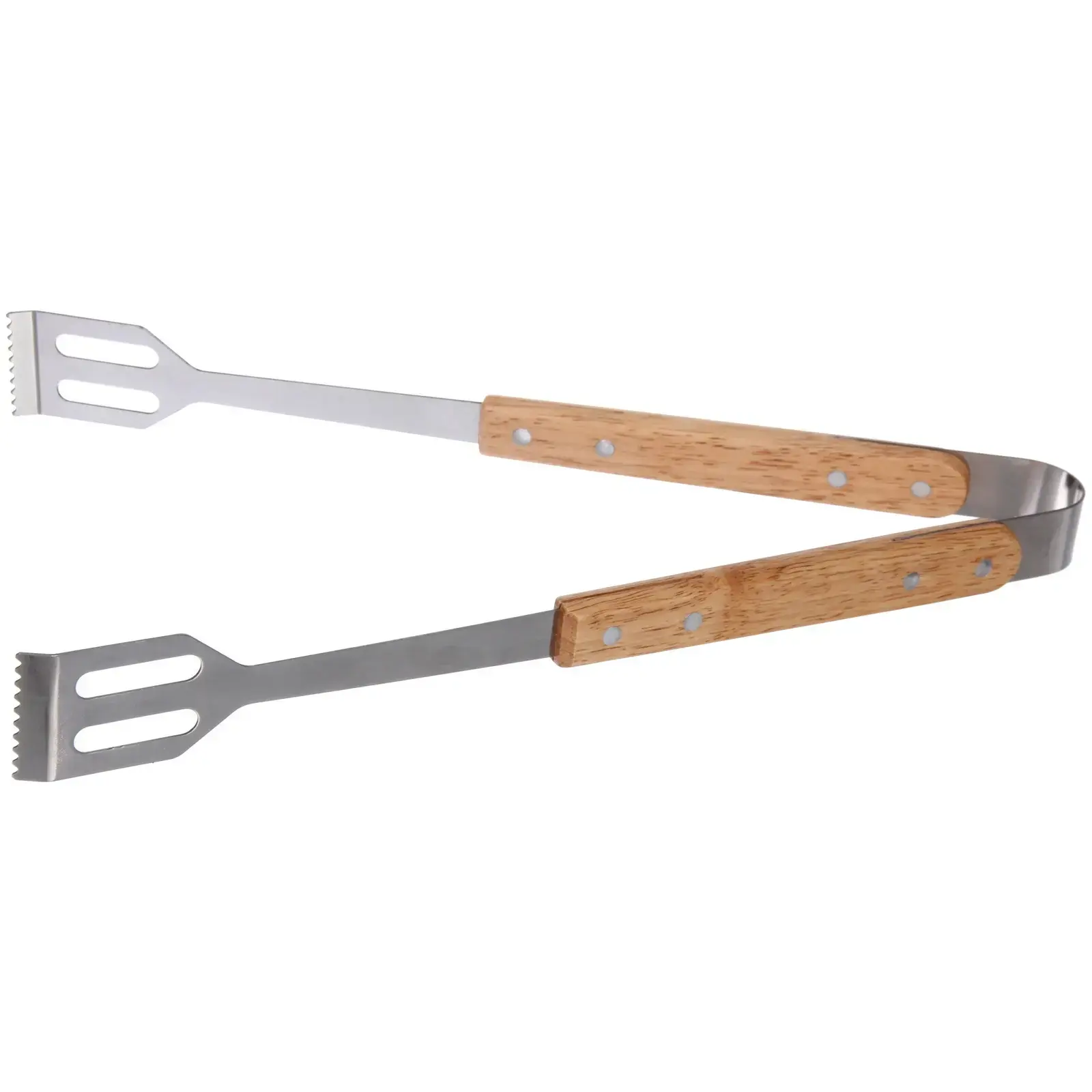 Выбирая наши щипцы, вы получаете не только качественный инструмент, но и уверенность в том, что ваши блюда будут приготовлены идеально. Нержавеющая сталь устойчива к коррозии и легко очищается, а деревянные ручки предотвращают скольжение в руках, что делает процесс готовки более комфортным. Эти щипцы также имеют два различных конца: один с зубцами для переворачивания, другой с гладкой поверхностью для извлечения, что делает их универсальными для любых задач на гриле.