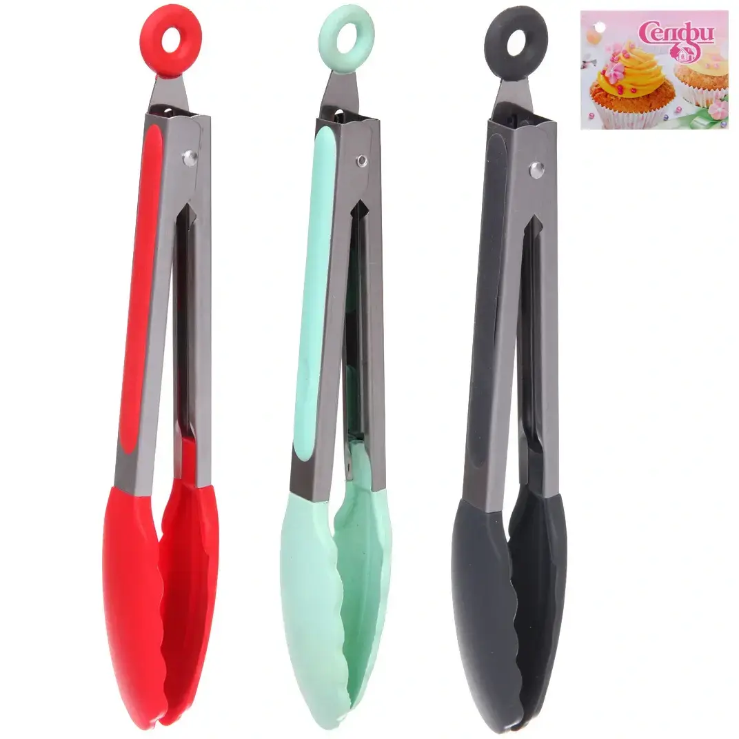 Щипцы кухонные «Селфи» 27 см с силиконовыми ручками, микс цветов — надежный захват и удобство готовки
