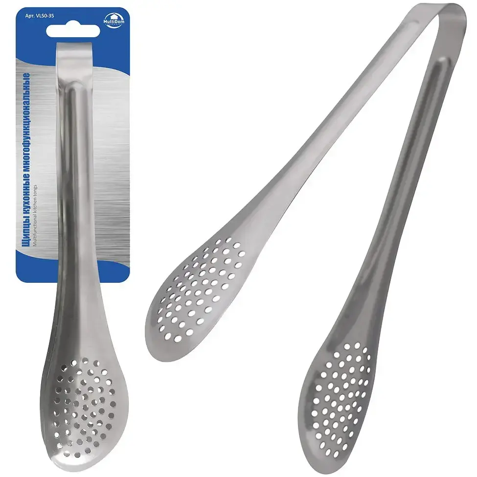 Щипцы кухонные универсальные, 23 см, нерж. сталь, зубчатый захват, серебристый VL50-35