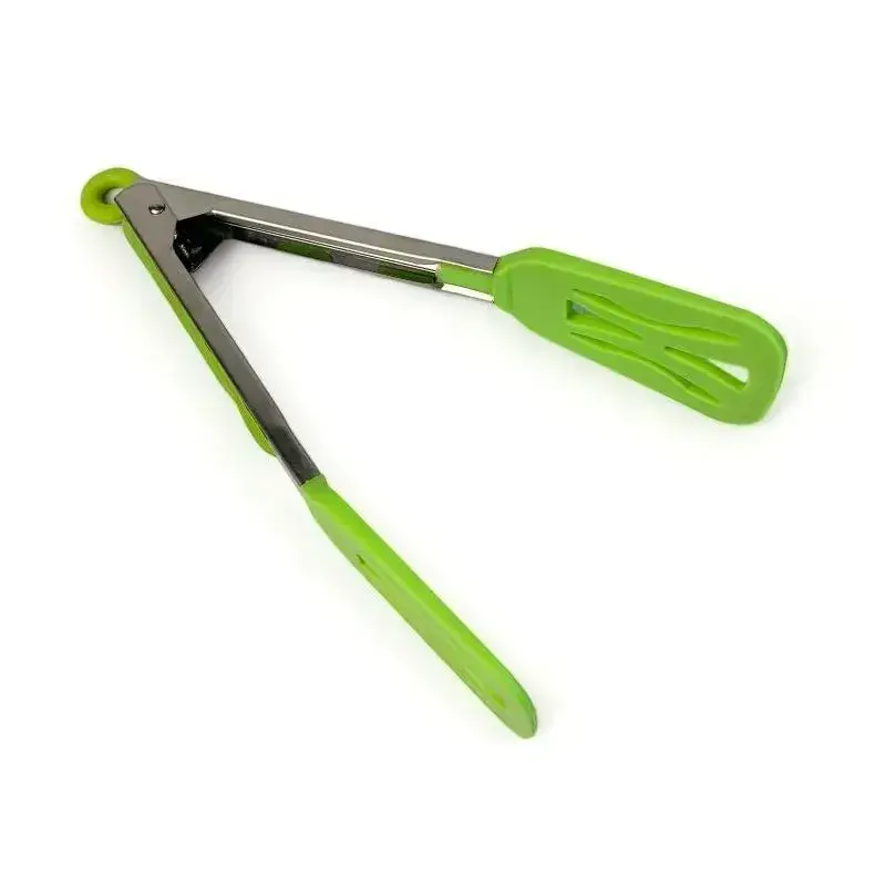 Щипцы кухонные силиконовые, зеленые ручки, длина 28см, нержавеющая сталь