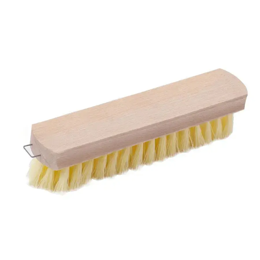 Щетина из упругого синтетического волокна сохраняет форму после многократного использования, а гладкая ручка из натурального бука обеспечивает надежный хват. Прямоугольная рабочая поверхность оптимальна для обработки больших площадей.