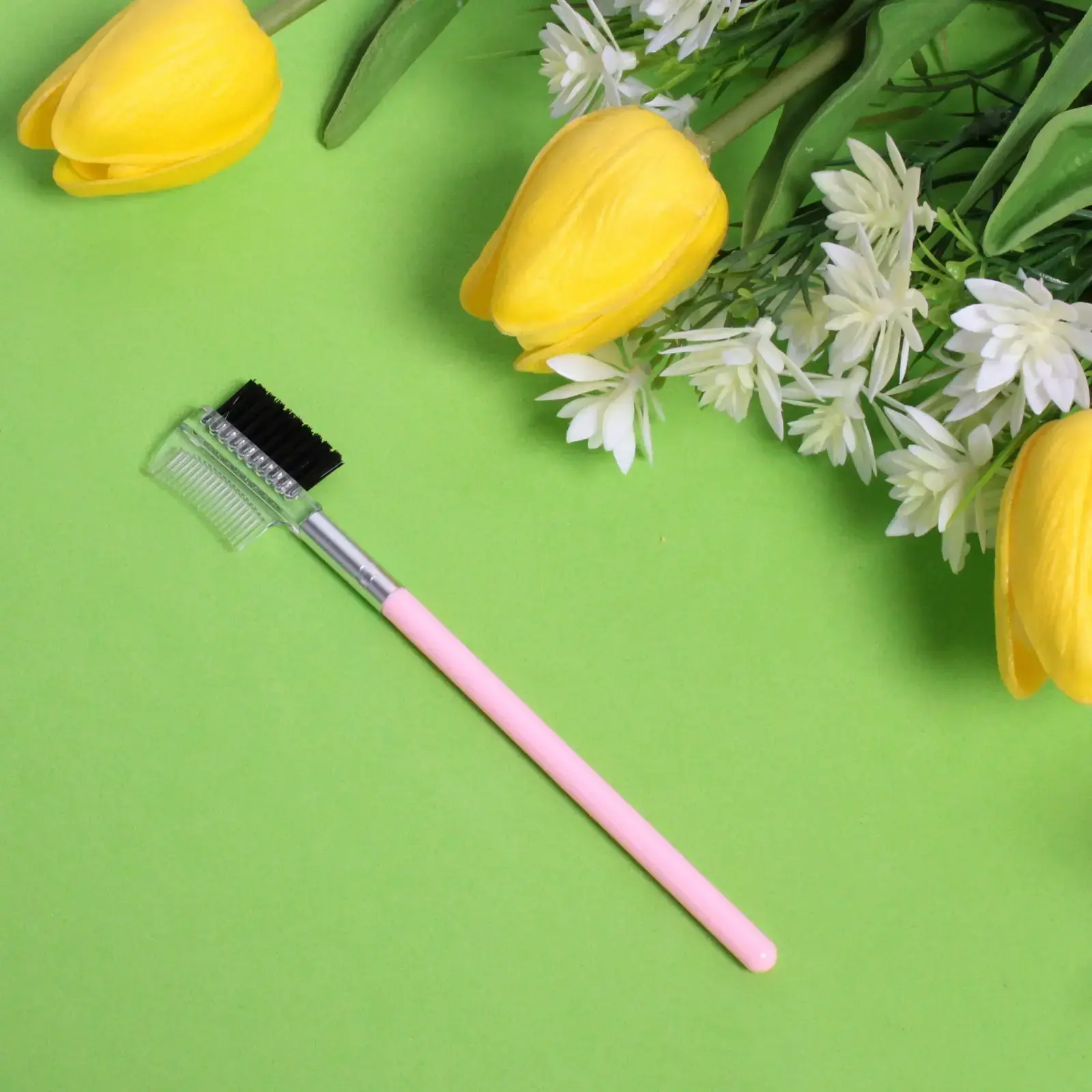 Щёточка выполнена из прочного пластика, что обеспечивает её долговечность. Размер 15 см позволяет легко носить её с собой в косметичке или сумочке. Не упустите возможность сделать ваш ежедневный уход за бровями и ресницами более простым и эффективным!