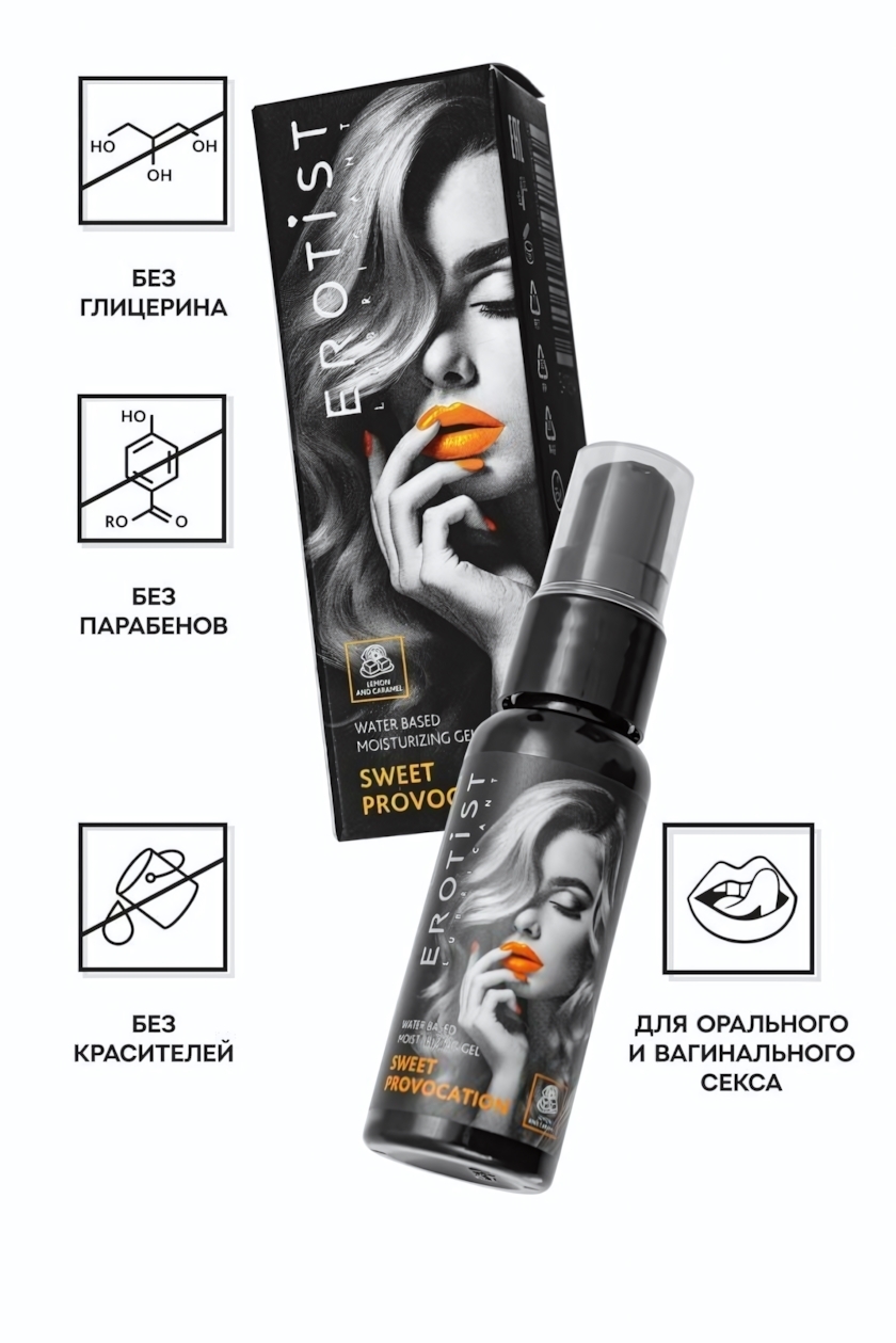 Объем флакона составляет 30 мл, что позволяет взять его с собой в поездки или на романтические свидания. Упаковка выполнена в стильном черном дизайне с яркими оранжевыми акцентами, что делает его не только функциональным, но и эстетически привлекательным. Не упустите возможность сделать ваши интимные моменты более сладкими и запоминающимися!
