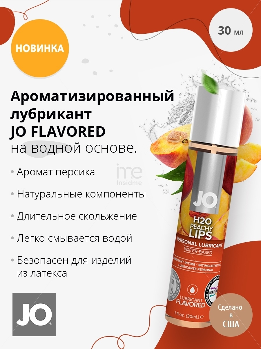 Съедобный лубрикант 'Peachy Lips', 30 мл, аромат персика, водная основа