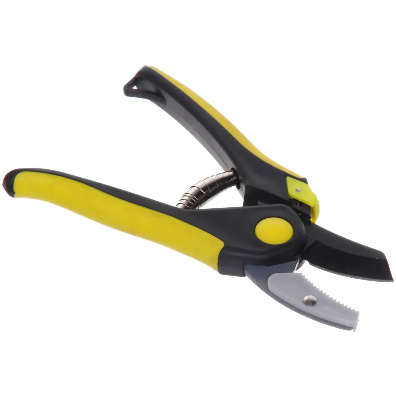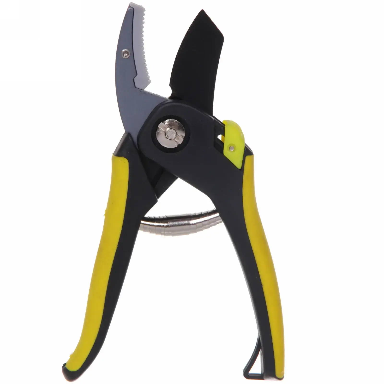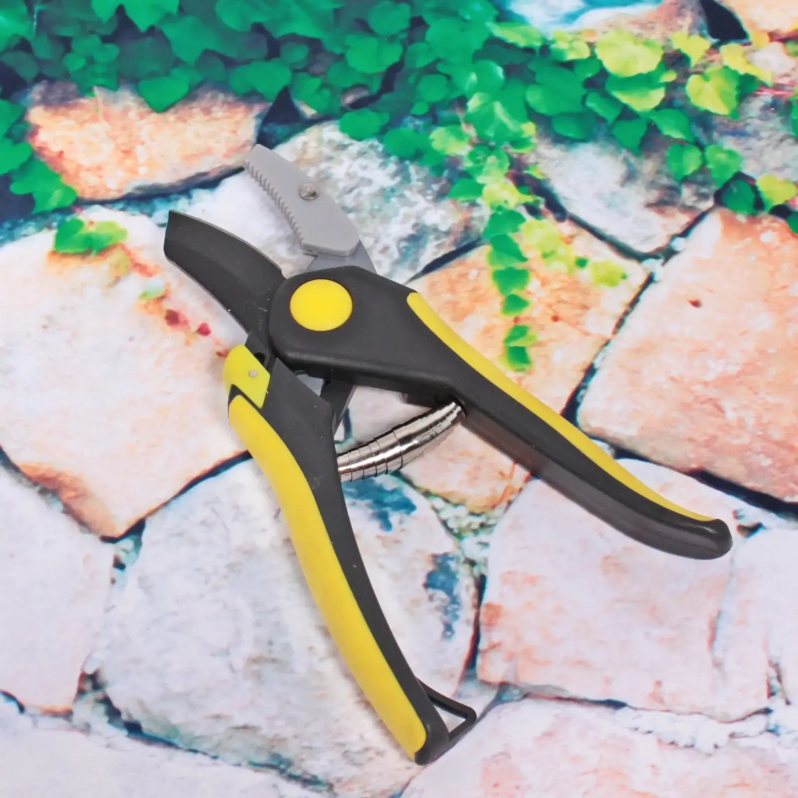 Секатор предназначен для прореживания не толстых веток, а также отлично подходит для сбора винограда и удаления усиков у клубники. Его контактный тип лезвия с зубчатой структурой позволяет легко резать даже более жесткие ветки, а пружинный механизм обеспечивает автоматическое открытие после сжатия ручек, что делает процесс обрезки более эффективным.