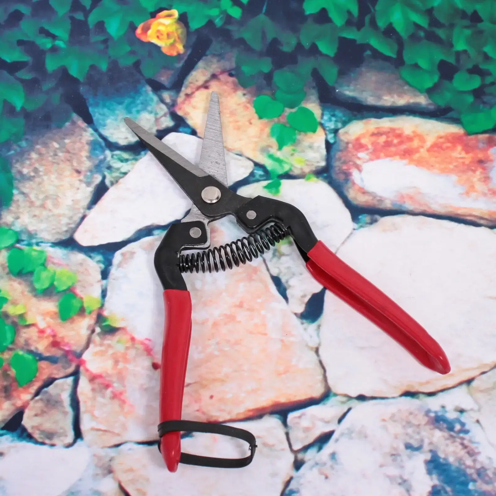 Секатор-ножницы имеют длину 18 см и выполнены из прочных материалов: металл для лезвий и ПВХ для ручек. Черные и красные цвета делают инструмент стильным и современным. Эти ножницы станут незаменимым помощником для каждого садовода, обеспечивая легкость и комфорт в работе.