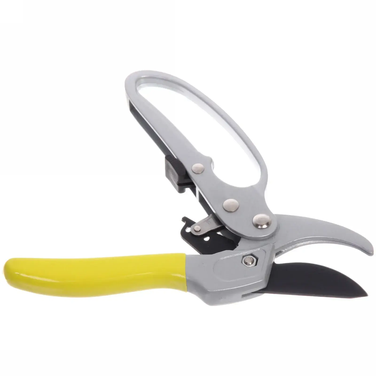 Секатор имеет комбинированные алюминиевые ручки, которые обеспечивают надежный захват и легкость в использовании. Его конструкция позволяет работать одной рукой, что делает процесс обрезки более удобным и эффективным. Благодаря изогнутой форме лезвий, вы сможете легко справляться с не толстыми ветками, не прилагая лишних усилий.