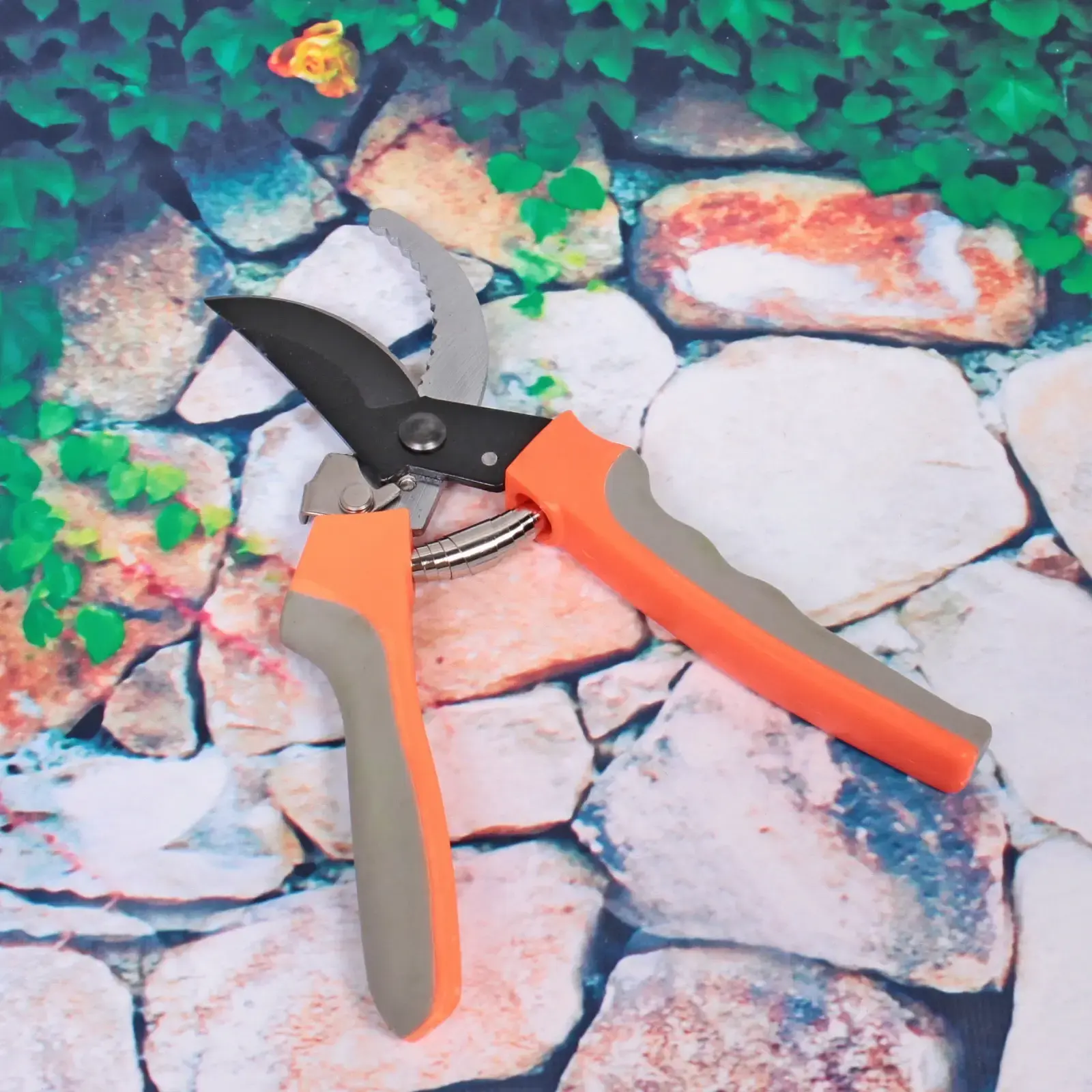 - Зубчатое лезвие надежно фиксирует ветки при обрезке