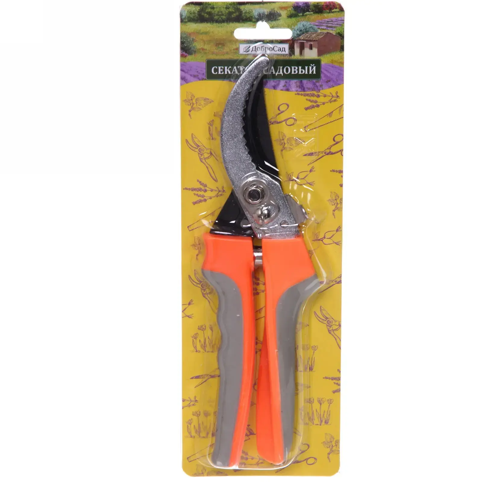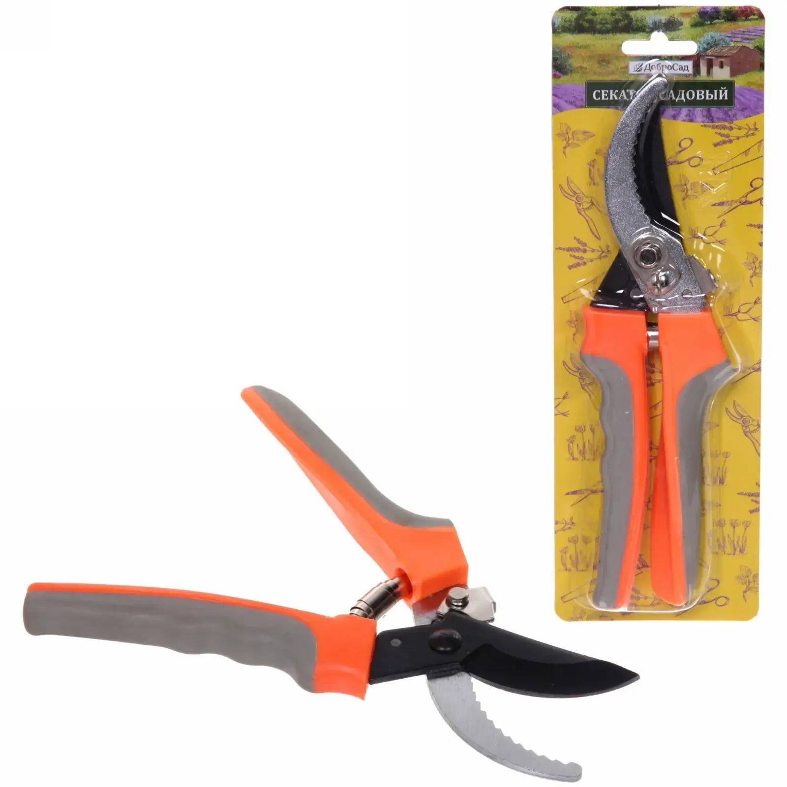 Секатор садовый 'ДоброСад' HL-7026C, 22,5см, зубчатое лезвие, оранжевые ручки