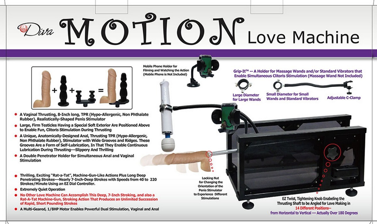 Секс-машина 'Motion' создана для тех, кто ценит комфорт и контроль. Благодаря мощному мотору и регулировке скорости от 40 до 220 движений в минуту, вы можете настроить интенсивность под свои предпочтения.
