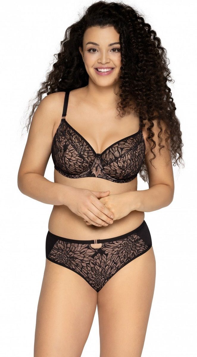 Состав из полиамида (91%), хлопка (5%) и эластана (4%) обеспечивает идеальное облегание без деформации. Кружевные элементы износостойкие — сохраняют форму после многократных стирок. Декоративная металлическая застежка спереди добавляет изысканности, оставаясь функциональной деталью.