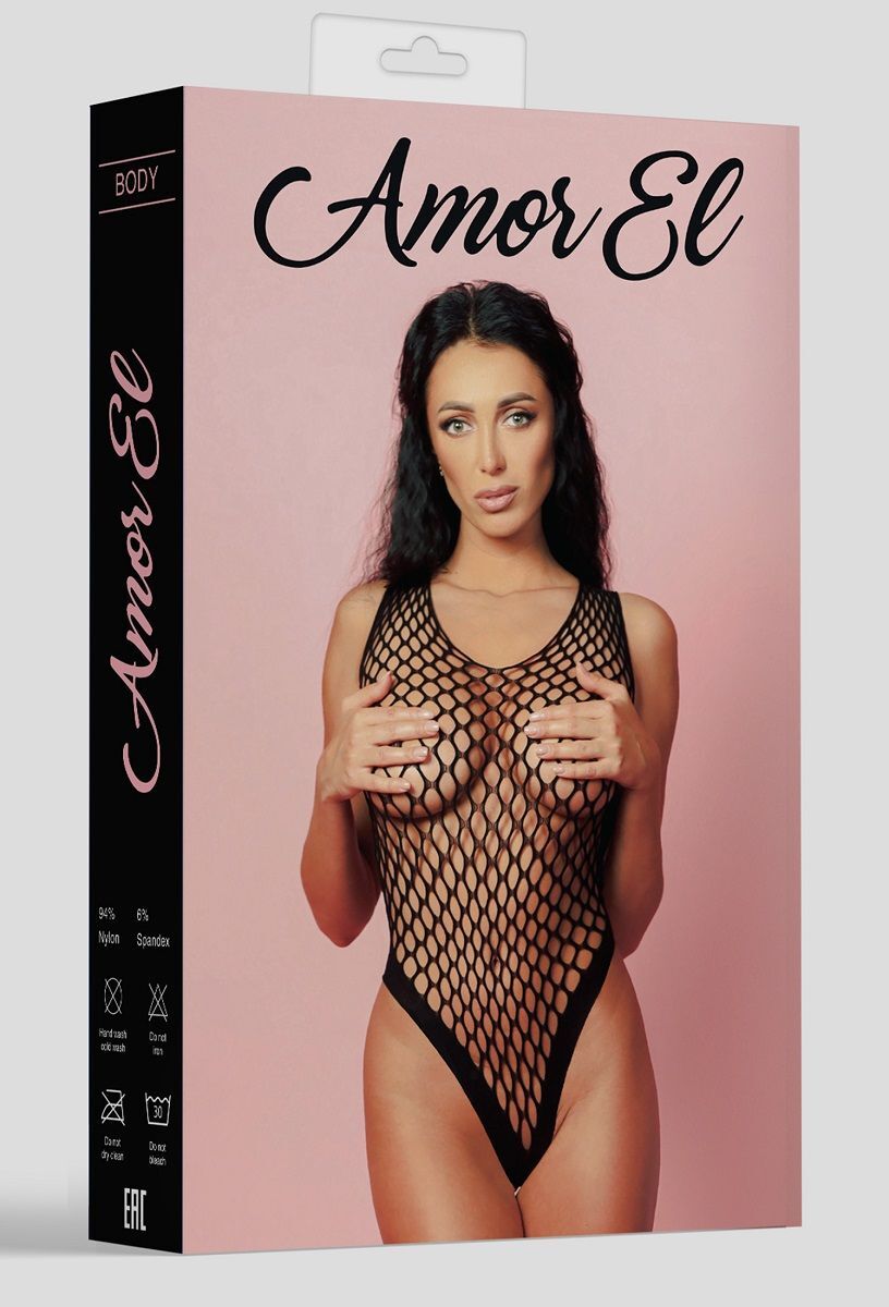 Боди сетчатое черное "AmorEl", размер S-M-L, Испания, нейлон/спандекс