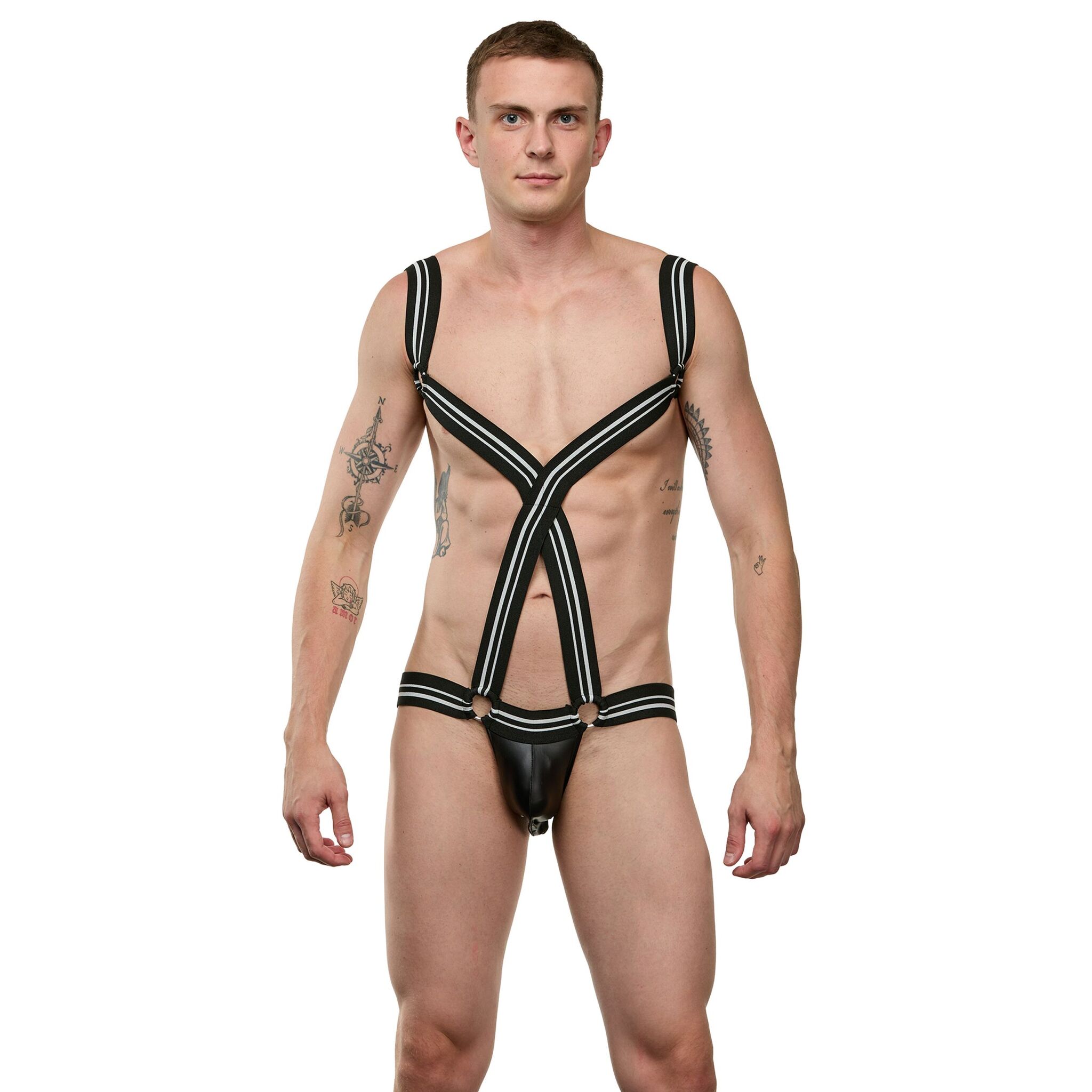 Погрузитесь в мир соблазна и уверенности с нашим сексуальным мужским боди с полосками. Это изделие создано для тех, кто ценит комфорт и стиль в эротичной одежде. Боди выполнено в черно-белых тонах, что подчеркивает вашу фигуру и добавляет нотку игривости в ваш гардероб.
