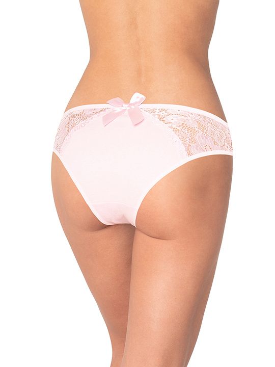 Изделие выполнено из высококачественного хлопка (95%) с добавлением эластана (5%), что обеспечивает идеальную посадку и комфорт при носке. Кружевные вставки на задней части добавляют нотку соблазнительности, а аккуратный атласный бант завершает элегантный образ.