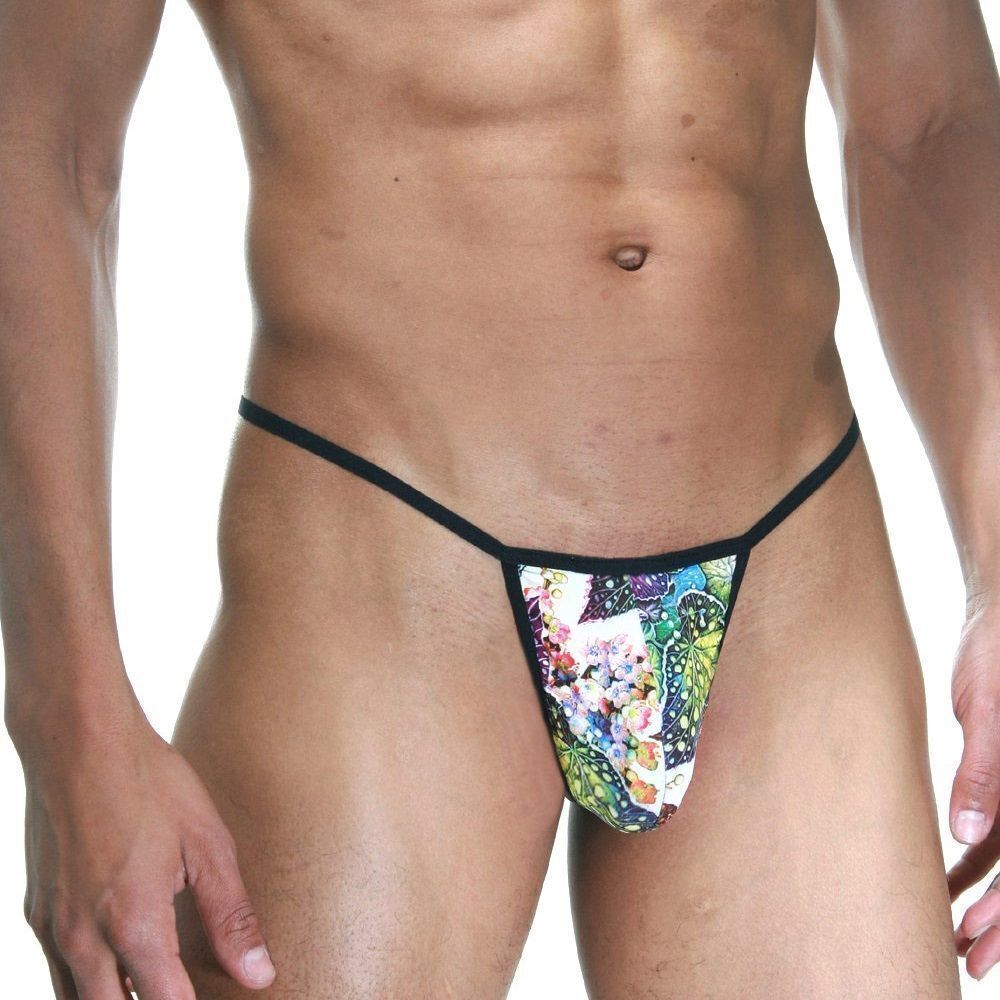 Мужские трусы-стринги с цветочным принтом и черной окантовкой, размер XL, 90% полиэстер/10% хлопок