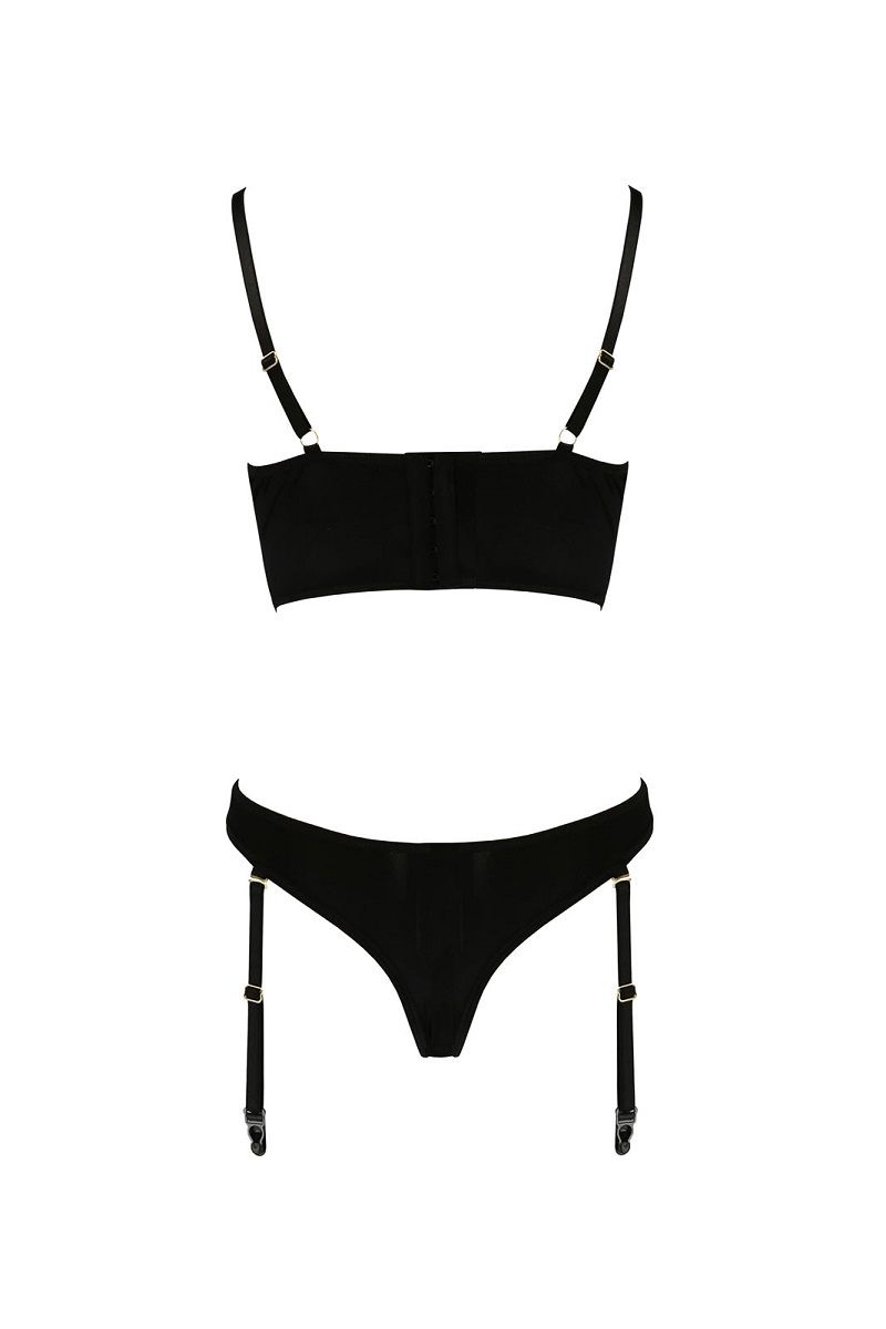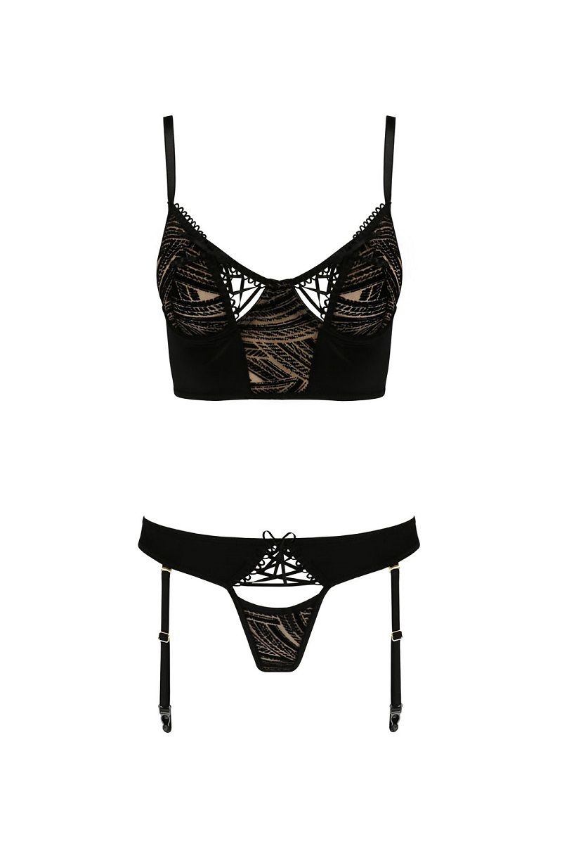 Комплект "Lara" — это гармоничное сочетание классического дизайна и современных деталей, созданное для того, чтобы подчеркнуть женственность и создать неповторимое настроение. Черный цвет, тонкое кружево и продуманные элементы делают этот набор идеальным выбором для романтических вечеров и особых случаев.