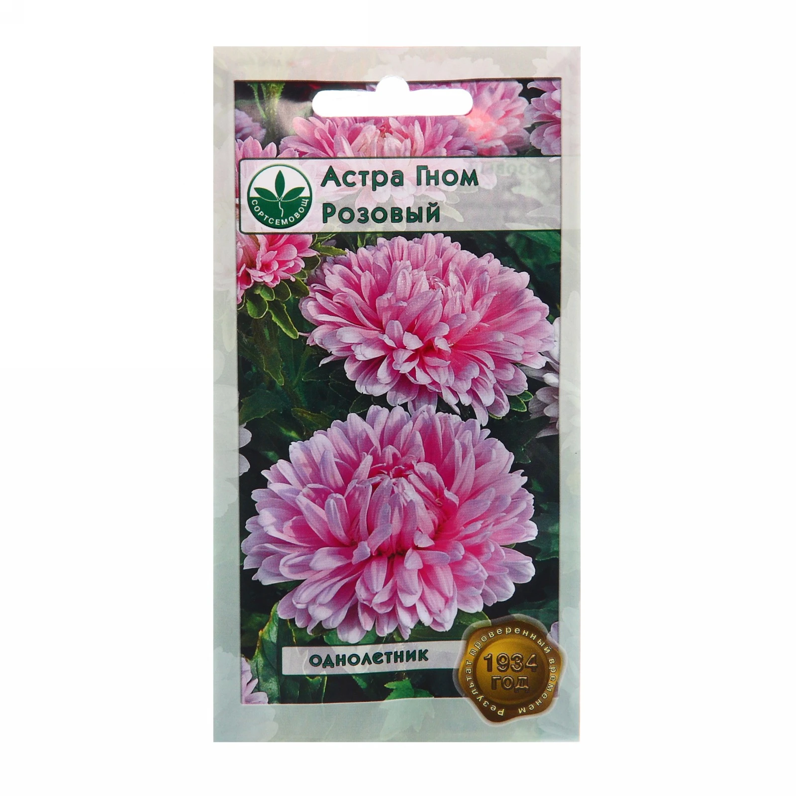 семена астры "Гном Розовый" 0,3 г, махровые цветы 6-7 см, цветут до заморозков