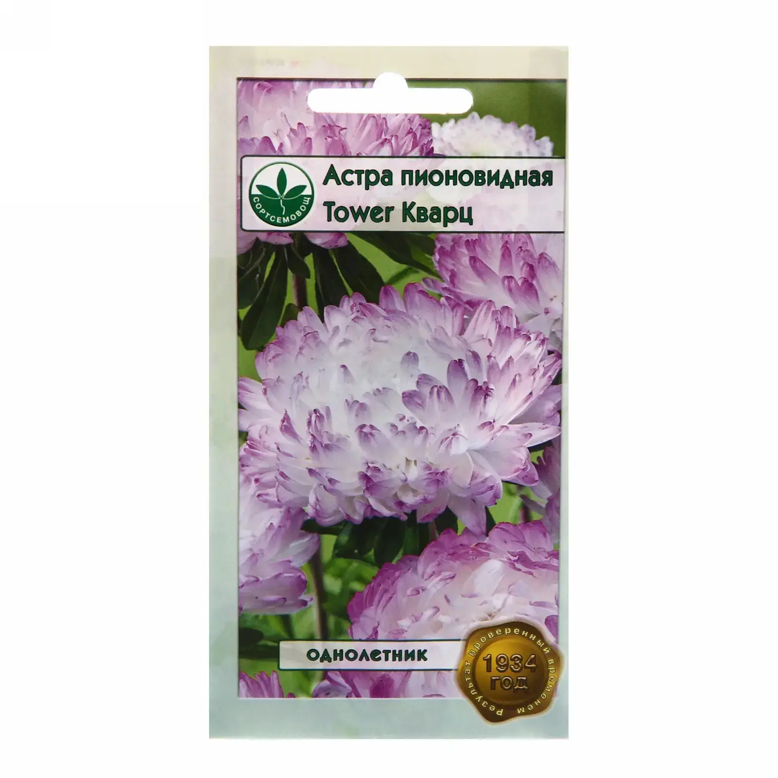 Семена астры пионовидной «Tower Кварц», серебристо-розовые с белым, махровые соцветия 8-10 см, высота 65 см