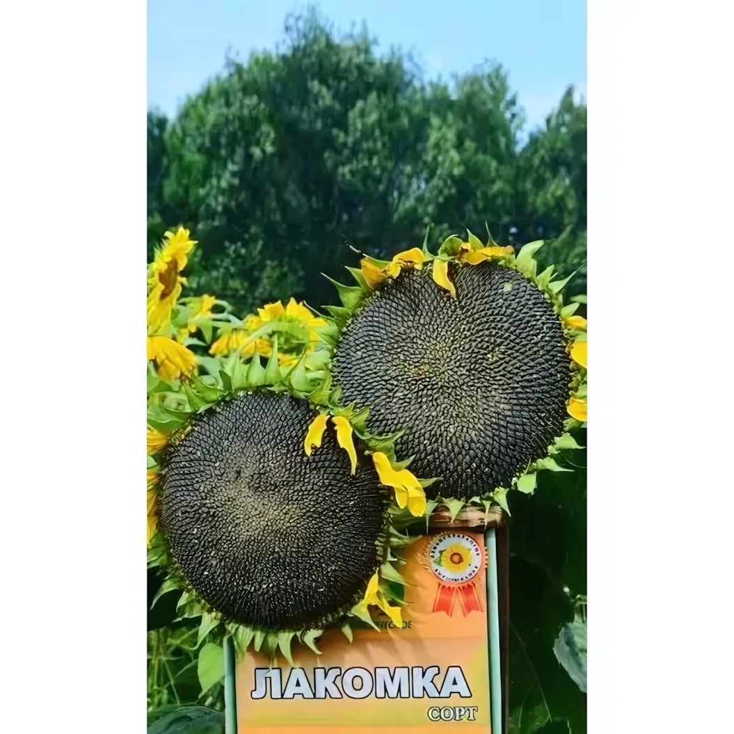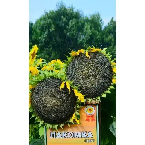 Сорт 'Лакомка' — это гарантированно крупные, плотные семена с отличным вкусом и нежной текстурой. Корзинки наклонены вниз, защищая зерно от дождя и птиц, а дружное созревание позволяет убрать урожай одним заходом.