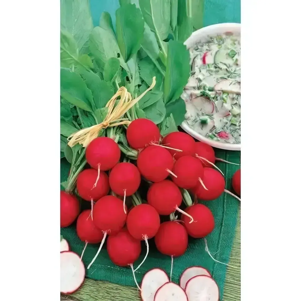 Почему стоит выбрать именно этот сорт? 'Летняя окрошка' обладает высокой урожайностью и отличным качеством корнеплодов. Редис имеет яркий красный цвет с белыми кончиками и средний размер около 4-5 см в диаметре. Устойчивость к цветушности позволяет вам наслаждаться свежими овощами даже в условиях повышенных температур.