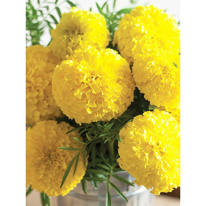 Тагетес «Купид» с крупными золотисто-желтыми соцветиями помогает создать выразительную и ухоженную цветочную композицию без сложного ухода. Пышные шаровидные цветы диаметром 8–10 см смотрятся эффектно как в одиночных посадках, так и в группах, наполняя участок насыщенным цветом с начала лета до заморозков.