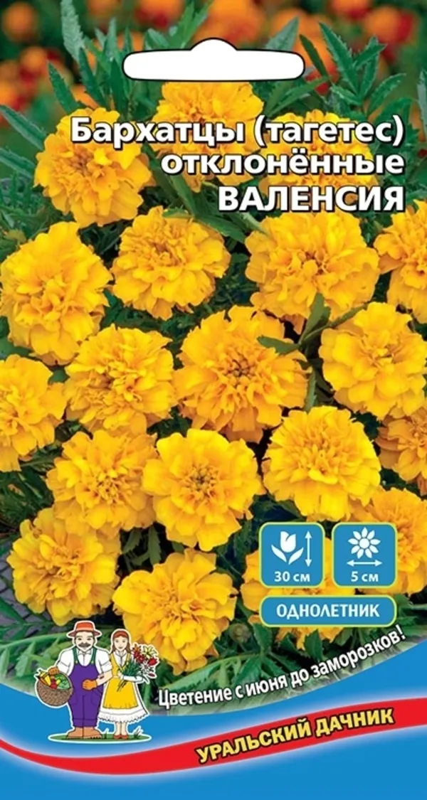 Семена упакованы в удобный пакетик весом 0,2 гр. Расстояние между растениями при посадке должно составлять 20-30 см, что обеспечит им достаточное пространство для роста. Бархатцы 'Валенсия' прекрасно смотрятся как в одиночных посадках, так и в групповых композициях, добавляя яркие цвета и радость в ваш сад.