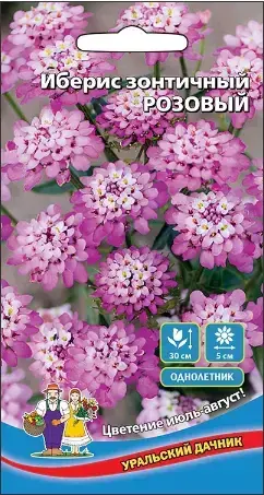 Семена упакованы в удобный пакетик, что обеспечивает их сохранность. Растение имеет мелкие зеленые листья, которые образуют плотный ковер, подчеркивая красоту цветков. Иберис зонтичный Розовый станет настоящим украшением вашего сада, привлекая внимание и восхищение гостей.