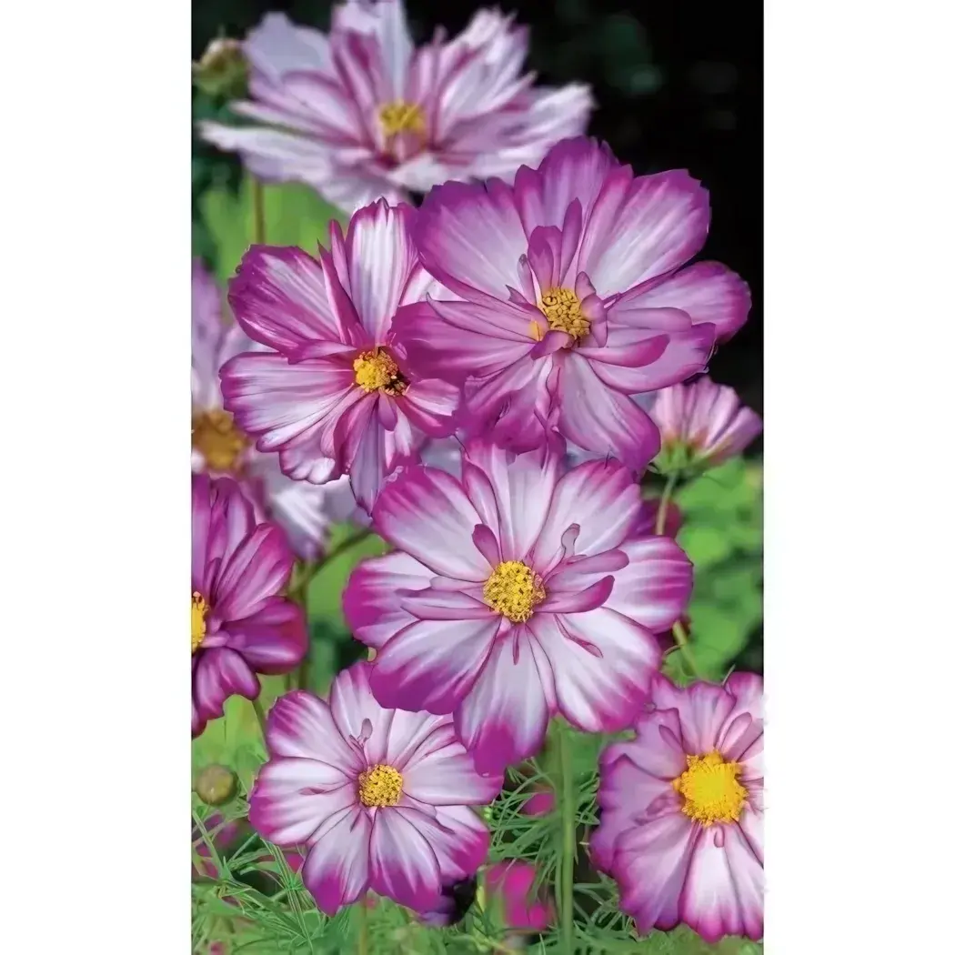 Космея «Карусель» сочетает эффектную декоративность с удивительной выносливостью. Белоснежные цветы с контрастной розовой каймой создают праздничное настроение, а ажурная листва добавляет воздушности любой композиции. Идеальный выбор для начинающих садоводов и тех, кто ценит яркие акценты без сложного ухода.