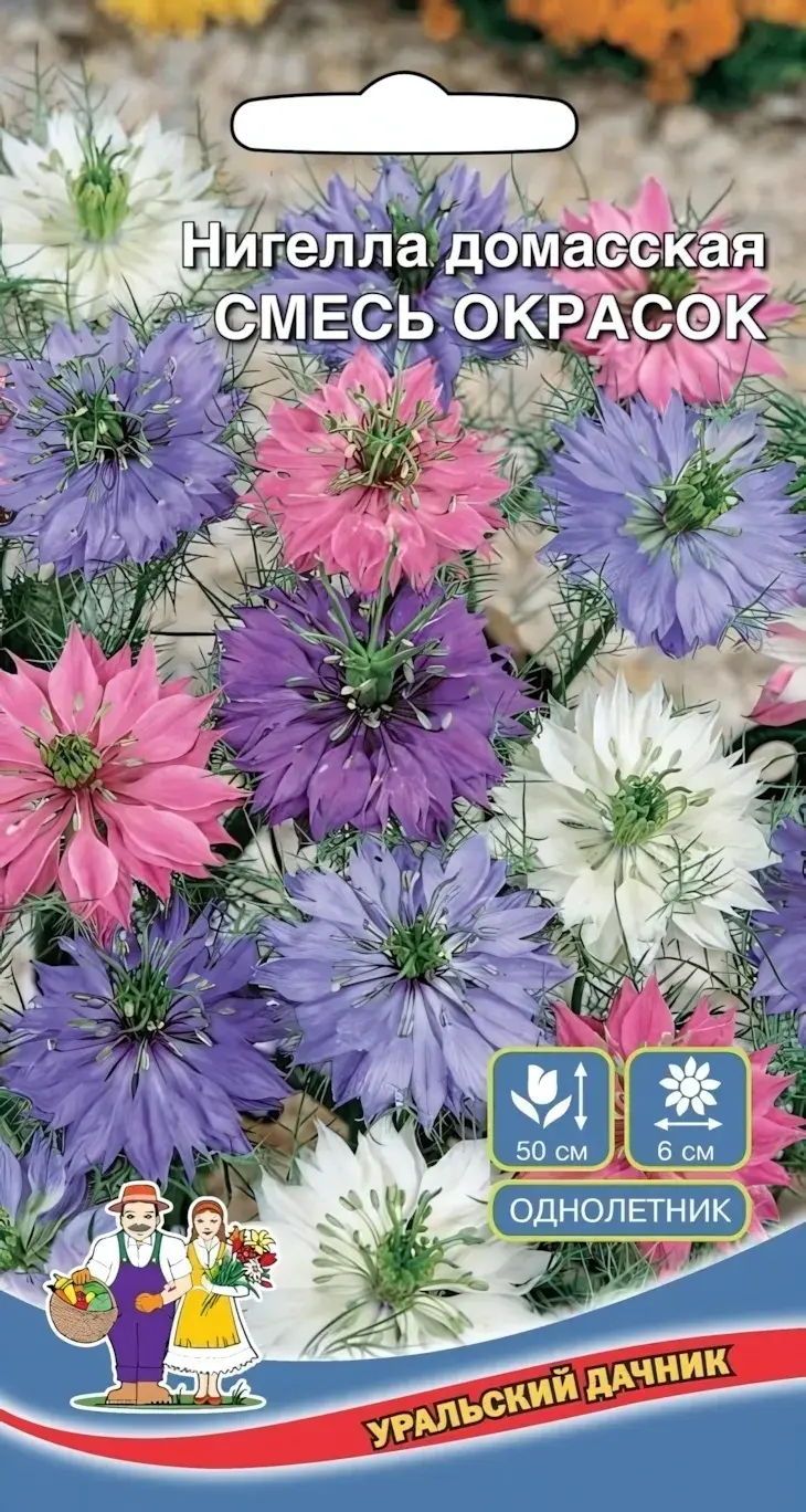 Превратите свой участок в живописный уголок с семенами нигеллы домашней. Разноцветные цветки диаметром 6 см создают неповторимый ковер на фоне ажурной зелени.
