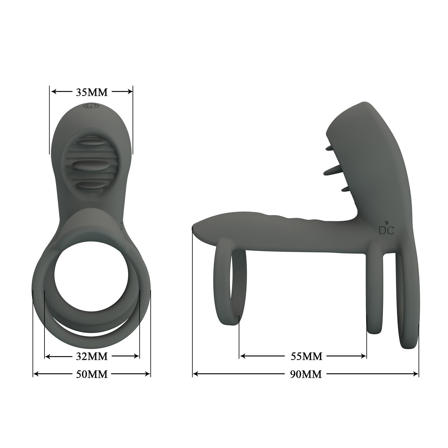 Насадка вибрационная с 12 режимами, 3 силиконовых кольца (3.2/5 см), серый, USB-зарядка
