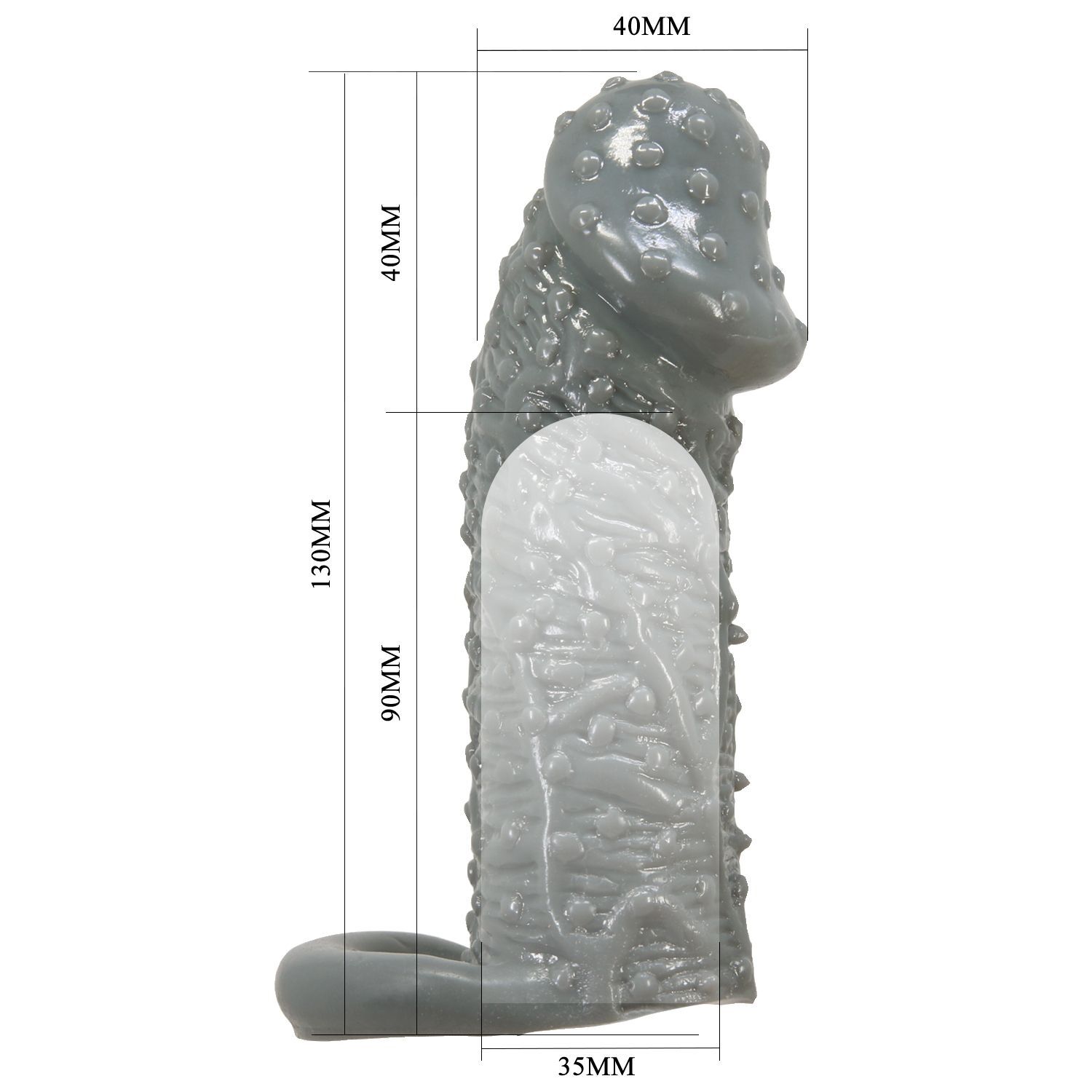 Серая насадка-удлинитель 'Fogg' станет вашим надежным помощником в создании незабываемых моментов. Благодаря продуманной конструкции и текстуре с точечными вкраплениями, она усиливает ощущения обоих партнеров.