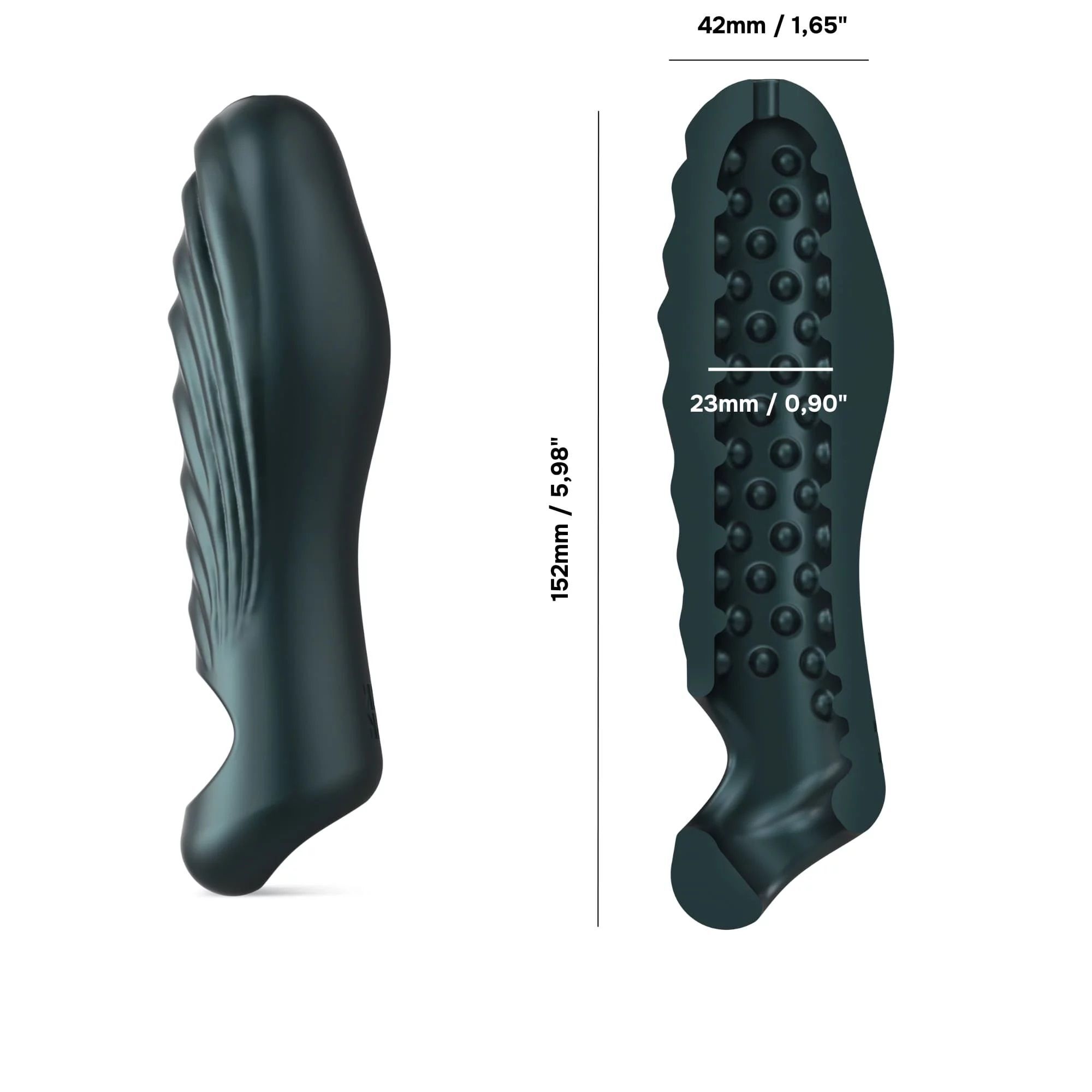 Этот девайс подходит для тех, кто ищет практичный инструмент для разнообразия интимных моментов. Он может использоваться в трёх сценариях: как мастурбатор с текстурированной внутренней поверхностью и отверстием для вакуума; как насадка для увеличения объема при вагинальном или анальном сексе; как стимулятор для клитора благодаря рельефной внешней поверхности.