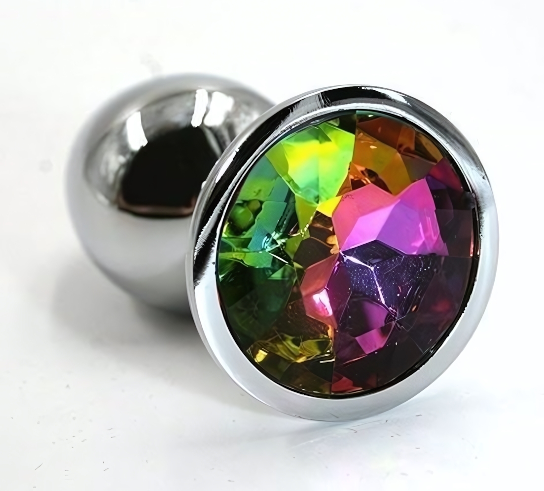 Анальная пробка 'Kanikule anal plugs', алюминий/радужный кристалл, 7см/3.4см