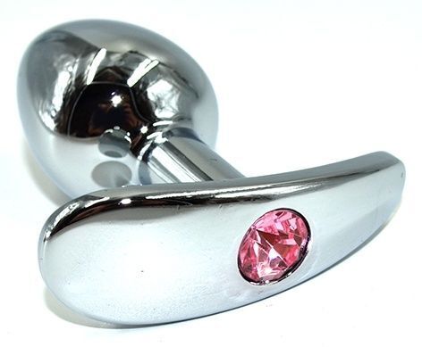 Серебристая анальная пробка с розовым кристаллом