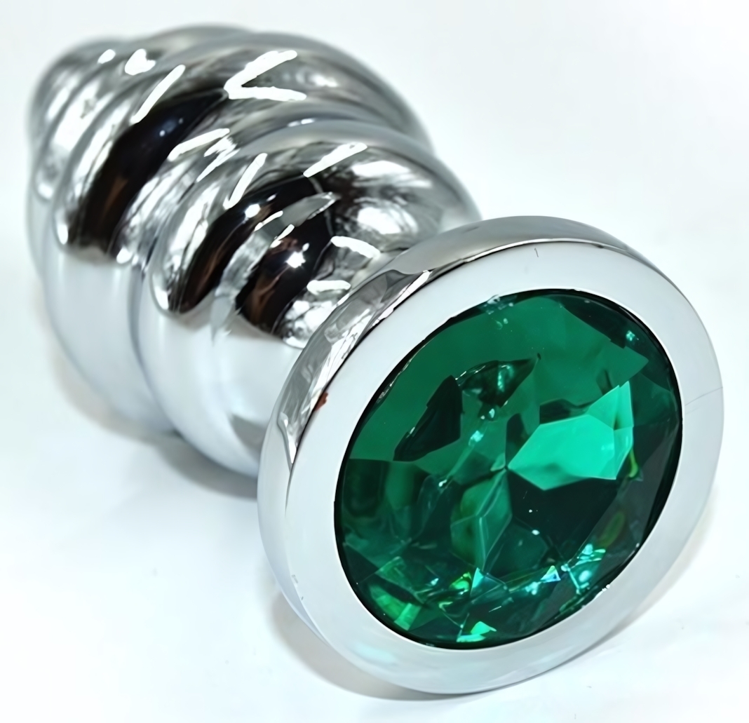 Анальная пробка из нержавеющей стали с зеленым кристаллом, ребристая поверхность, гипоаллергенная, 8,8 см