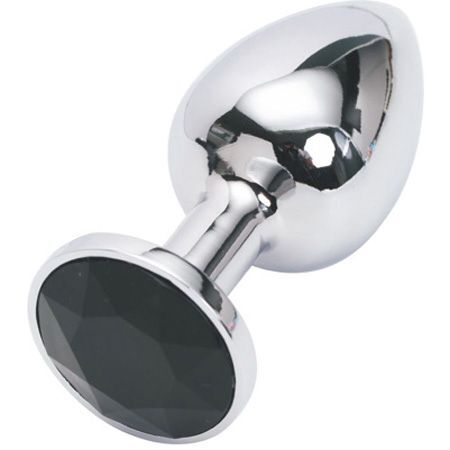 Анальная пробка металлическая с кристаллом, черная, длина 7.6см, диаметр 2.8см