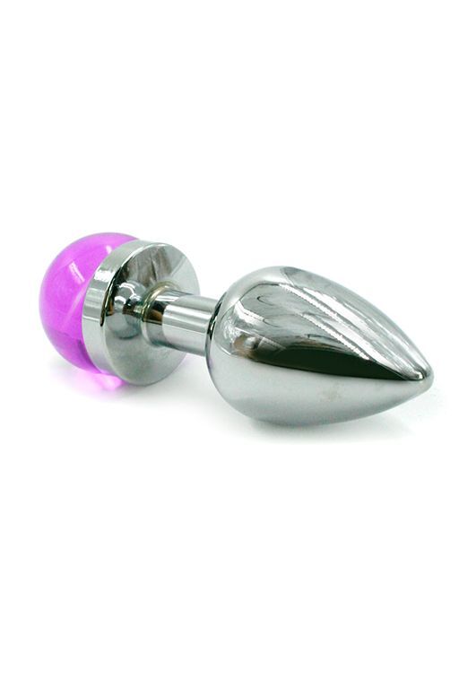 Пробка имеет длину 6 см и диаметр 2.8 см, что делает ее идеальной для комфортного использования. Изготовлена из металла, она обладает прочной и гладкой текстурой, а фиолетовая сфера из стекла добавляет яркий акцент. Этот товар станет отличным дополнением к вашей коллекции интимных аксессуаров.