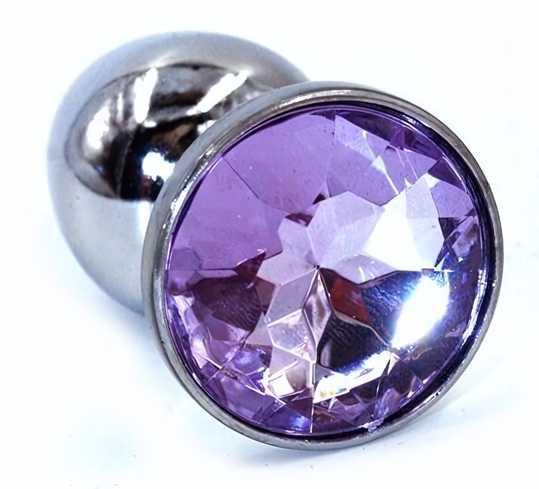 Анальная пробка металлическая с фиолетовым стразом, длина 7см, диаметр 2.7см