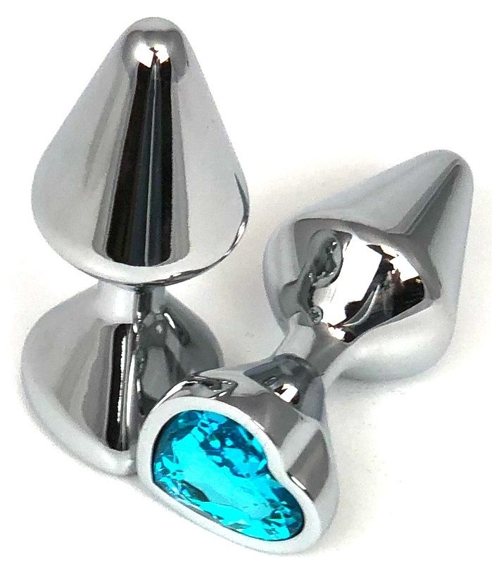 Основание изделия украшено вставкой в форме сердца из голубого гранёного кристалла. Этот элегантный декоративный элемент добавляет эстетики и превращает функциональный аксессуар в изысканное интимное украшение. Серебристая металлическая поверхность с зеркальным блеском выглядит современно и гигиенично.