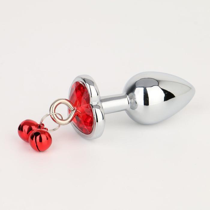 Серебристая анальная пробка с колокольчиками и красным кристаллом-сердцем — это идеальный аксессуар для тех, кто хочет добавить в свою интимную жизнь нотки новизны и удовольствия. Изготовленная из высококачественного металла, пробка обеспечивает легкое скольжение и комфортное использование. Ее длина составляет 7 см, а диаметр — 2.8 см, что делает ее подходящей как для новичков, так и для опытных пользователей.