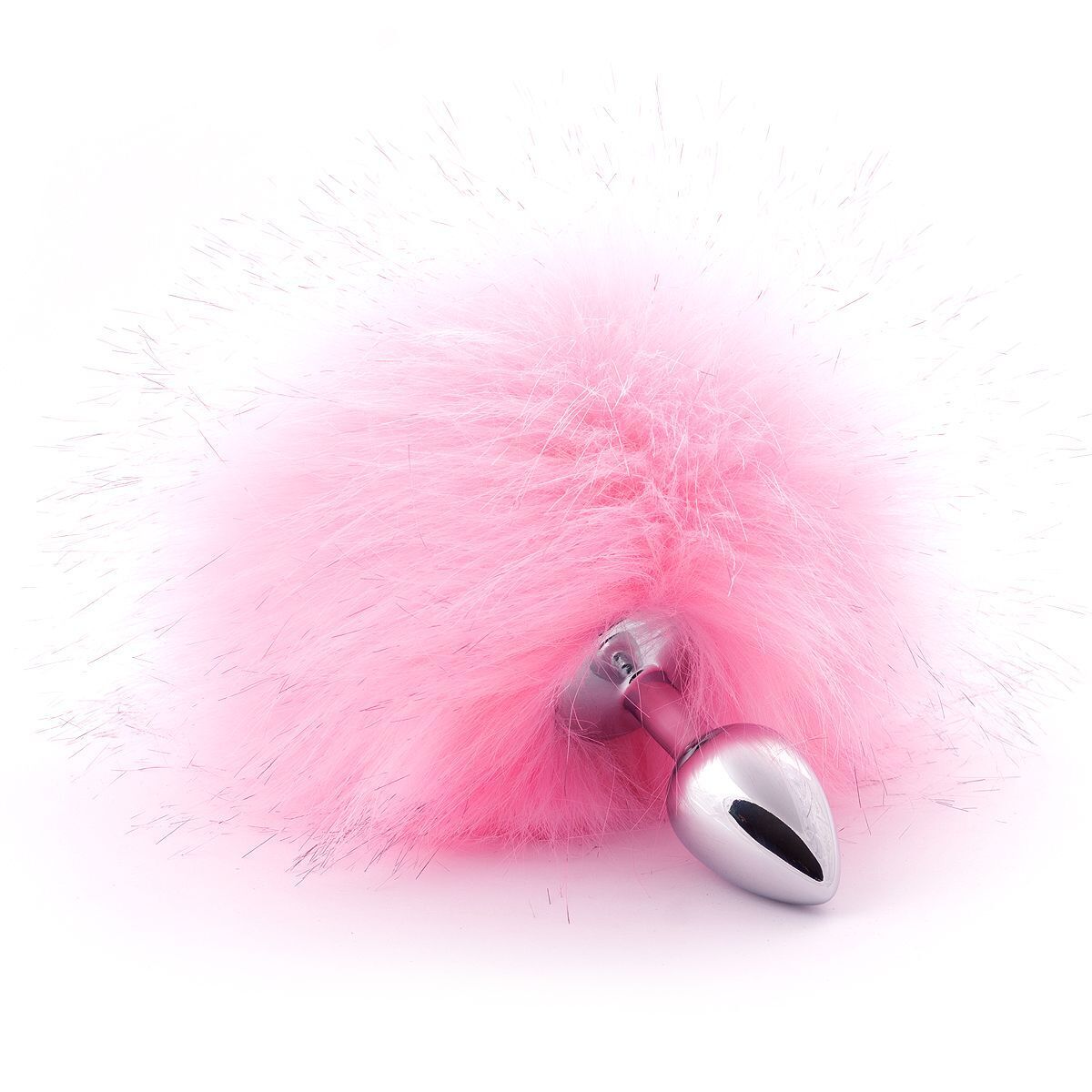 Анальная пробка металлическая с пушистым хвостом, диаметр 2.7см, розовый мех