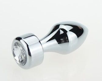 Серебристая анальная пробка с кристаллом