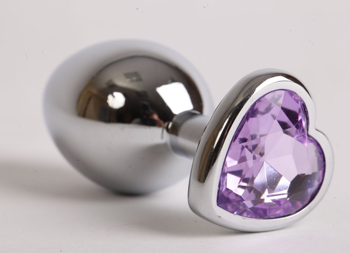 Серебристая анальная пробка с сиреневым стразиком