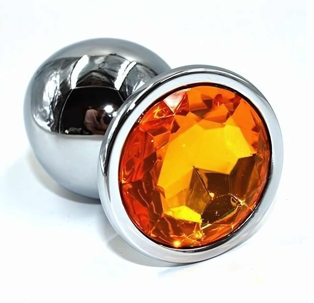 Анальная пробка металлическая с оранжевым кристаллом, длина 7см, диаметр 2.7см