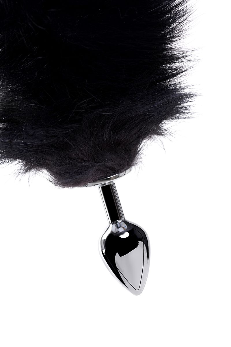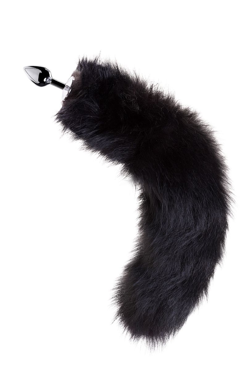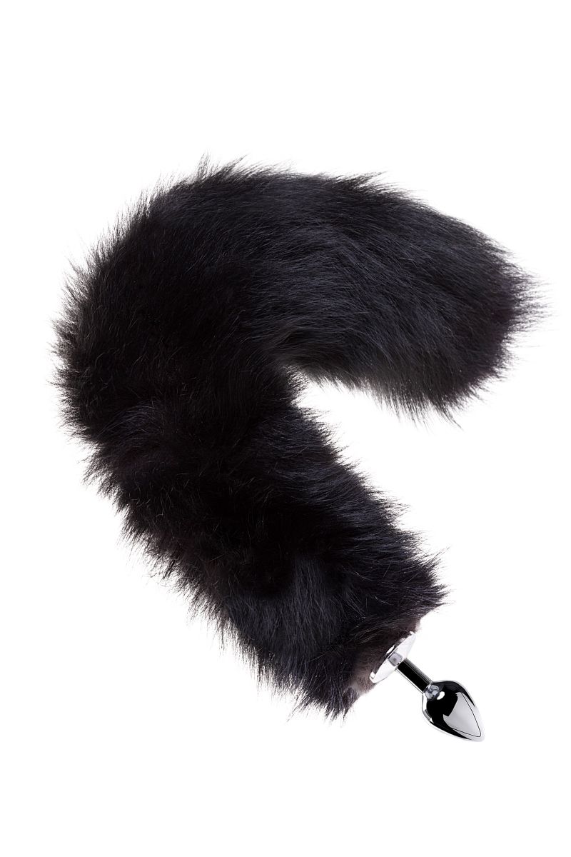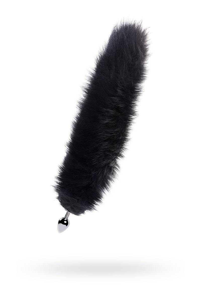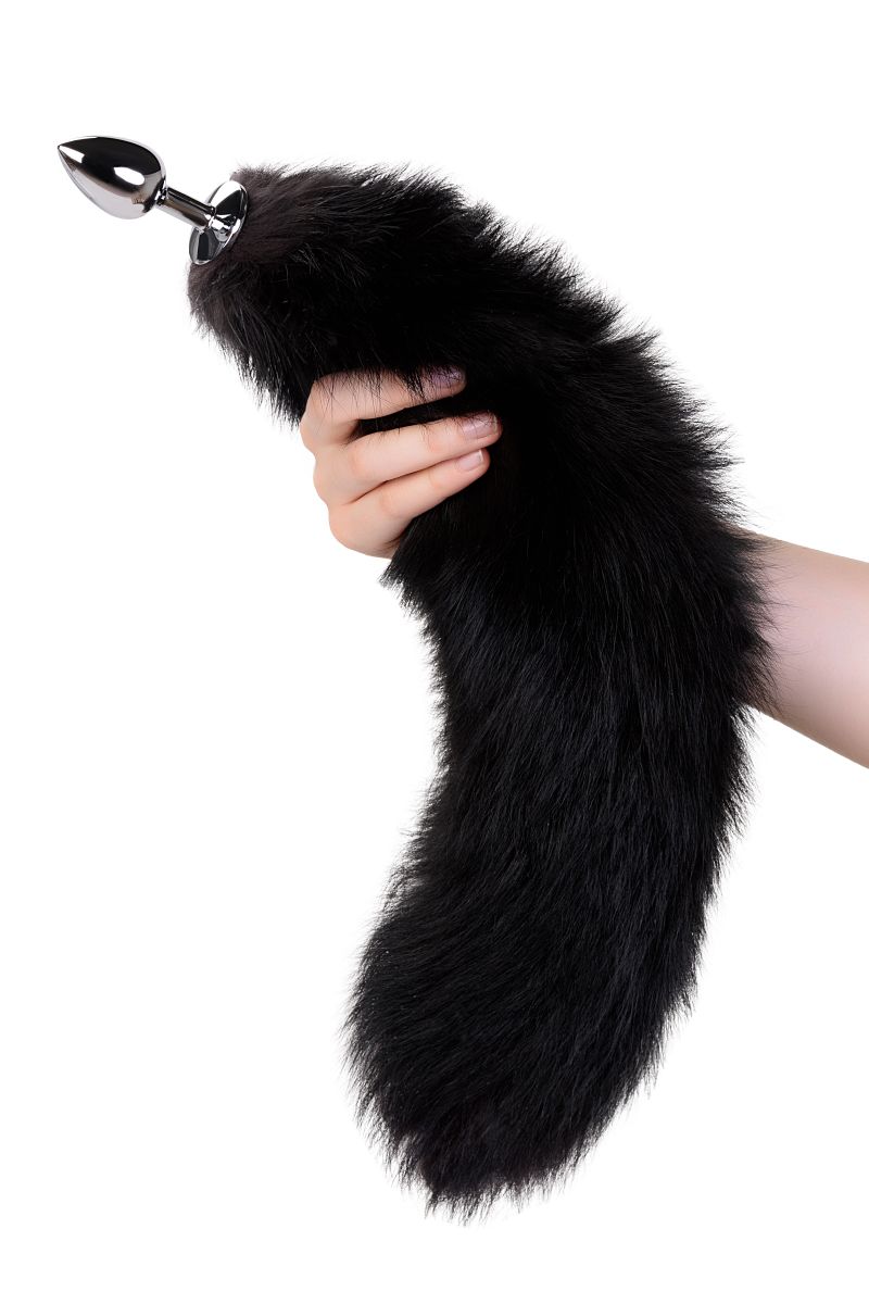Общая длина изделия с хвостом составляет 34 см. Металлическая втулка имеет длину 6.5 см и диаметр 2.8 см, что делает её удобной для большинства пользователей. Изделие изготовлено из комбинации металла (основа) и меха (хвост). Цвет хвоста – глубокий черный, металлическая часть имеет классический серебристый оттенок.