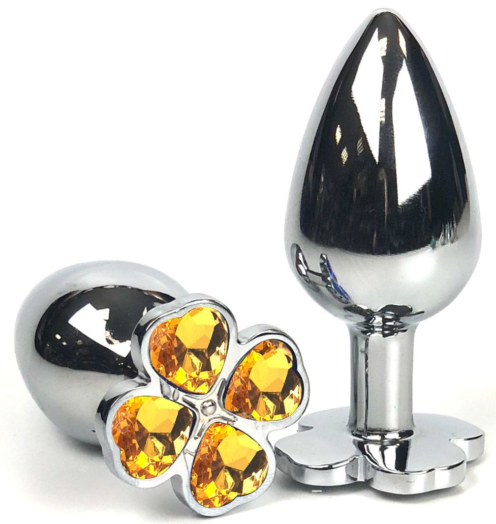 Подарите себе новые ощущения с этой изысканной металлической анальной пробкой. Её уникальный дизайн сочетает в себе классическую форму, безопасность использования и эстетическое удовольствие. Идеально гладкая серебристая поверхность обеспечивает максимальный комфорт, а сияющие оранжевые кристаллы на основании в виде клевера добавляют игрушке особый шарм и помогают раскрепоститься.