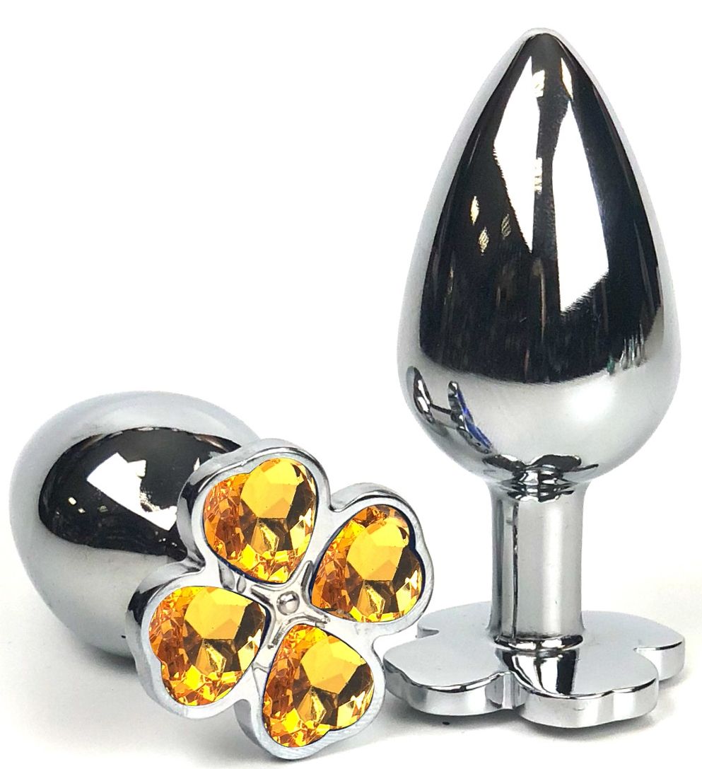- Стильный дизайн: Декоративный элемент из четырех ограненных кристаллов ярко-оранжевого цвета, собранных в форме клевера на основании, добавляет эстетики и помогает раскрепоститься, превращая интимный аксессуар в изысканное украшение.