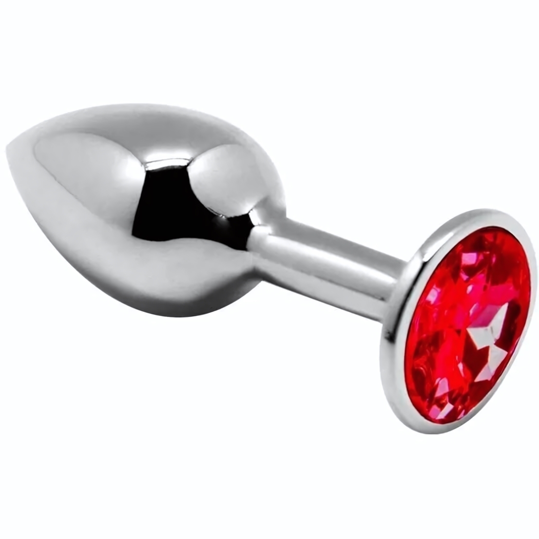 Анальная втулка металлическая с кристаллом, размер S, 7 см, красный, комфортное использование
