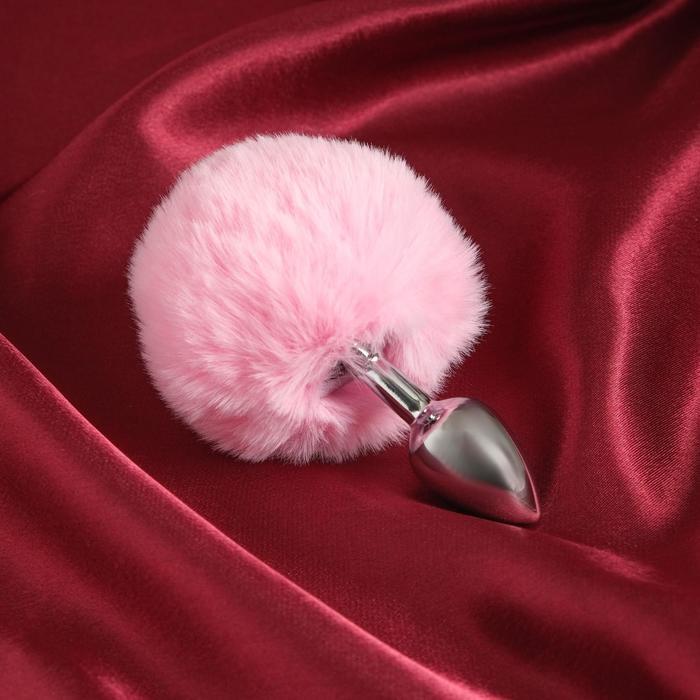 Серебристая анальная втулка с розовым хвостиком